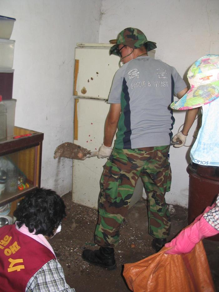 이날 매화봉사단과 이동 빨래팀은 오랜 우기 속에서 습기를 머금은 냄새 나고 더러운 옷 대부분을 세탁했으며 군인들은 집안 가구는 물론 집주변 청소를 실시했고 매포읍에서는 청소차량을 지원해 쓰레기 수거활동을 펼쳤다.