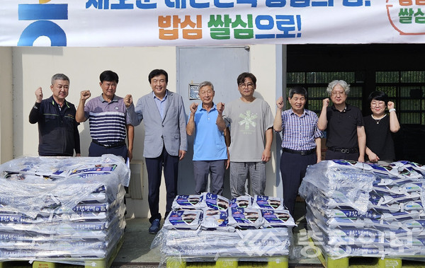 충북 진천군 광혜원농협(조합장 박봉식)이 19일 쌀 소비촉진과 아침밥 먹기운동 확산을 위해 1200여 명의 전 조합원에게 생거진천 쌀 10㎏씩을 전달했다.