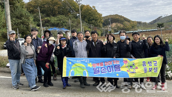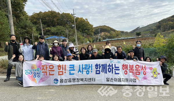 충북 음성군 홍보실 강연수 실장과 직원들, 음성읍행정복지센터 이재옥 읍장과 직원들은 29일 가을 영농철 맞아 인력부족으로 어려움을 겪고 있는 음성읍 초천리 소재 고추재배 농가를 방문해 고추따기 등 일손을 도우며 구슬땀을 흘렸다. /음성=김록현기자