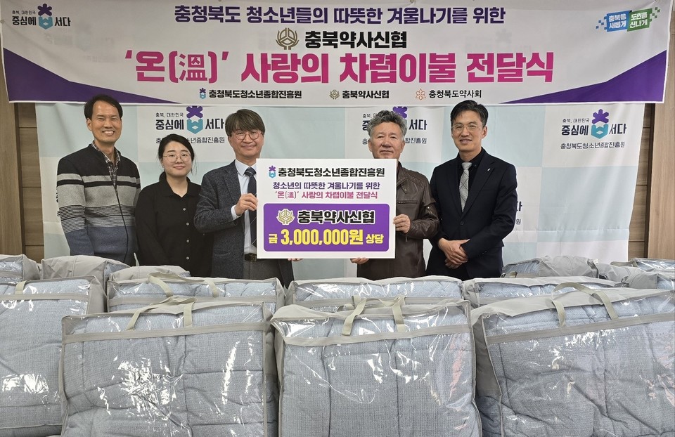 충북도약사신협은 30일 충북도청소년종합진흥원에 취약계층 청소년의 따뜻한 겨울나기를 위한 차렵이불 30채를 기탁했다. 배명식 기자 mooney7777@naver.com 다른기사 보기 저작권자 © 충청일보 무단전재 및 재배포 금지 당신만 안 본 뉴스 충청내륙고속화도로 12월 완전 개통... 충북 반나절 생활권 대전 도시정책, 설계부터 다시 짚어야 청주 산업지형 ‘대전환’…떠나는 분리막, 들어오는 HBM 세종지역 아파트 공급 가뭄 해소되나 대통령실·민주당, '행정수도 세종시 이전' 정책 본격 추진 나서 진천군수 선거 본격 점화···여야 6명 ‘무주공산’ 놓고 각축 “문 닫는 가게가 더 많다”…충북 자영업 폐업, 올해 벌써 지난해 추월 충청내륙고속화도로 12월 완전 개통... 충북 반나절 생활권 댓글삭제 삭제한 댓글은 다시 복구할 수 없습니다. 그래도 삭제하시겠습니까? 비밀번호 닫기 기사 댓글 0 댓글 접기 로그인 후 이용 가능합니다. 댓글 내용입력 비회원 로그인 이름 비밀번호 댓글 내용입력 댓글쓰기 계정을 선택하시면 로그인·계정인증을 통해 댓글을 남기실 수 있습니다. 회원 로그인 비회원 글쓰기 이름 비밀번호 자동등록방지 로그인 옵션 창닫기 주요기사 3분기 카드 해외사용 59억달러… 사상 최대 기록 충북 소비자심리지수 116.8… 2010년 이후 최고치 기록 충북도, 'AI 페스타 2025'로 AX 혁신거점 도약 청년 취업난에 직업계고 졸업생 절반은 대학 진학 청주서 수년 만에 출현한 바바리맨, 경찰 검거 기온 변동성 큰 이번 겨울, 짧고 간헐적 추위 찾아와