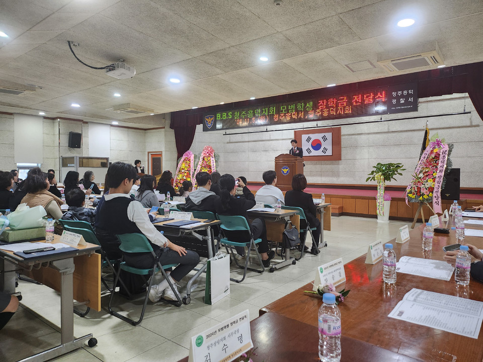 한국 B.B.S충북연맹 청주흥덕지회는 5일 흥덕경찰서 회의실에서 모범청소년 45명에게 50만원씩 총 2250만원의 장학금을 전달했다.
