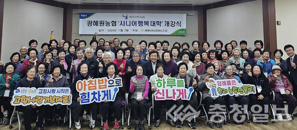 충북 진천군 광혜원농협(조합장 박봉식)은 7일 농협 회의실에서 조합원 80여 명이 참석한 가운데 2024년 시니어행복대학 개강식을 개최했다.