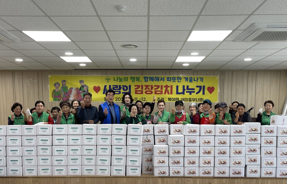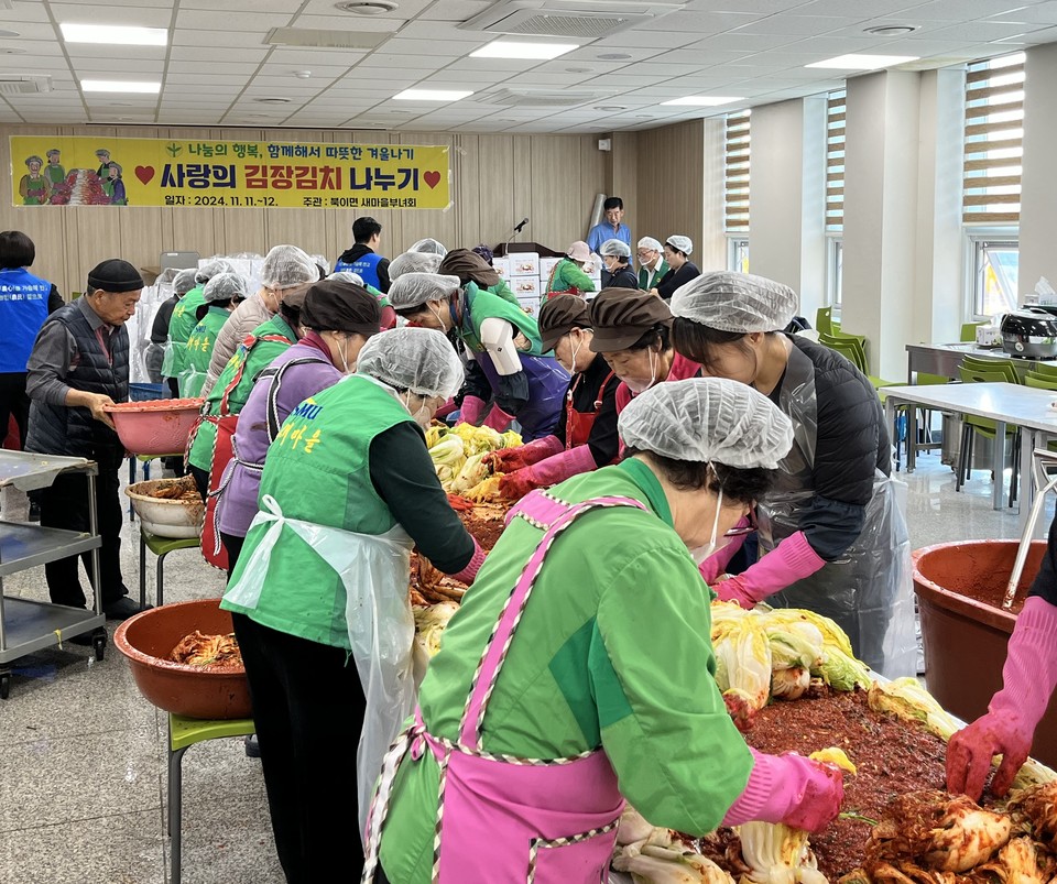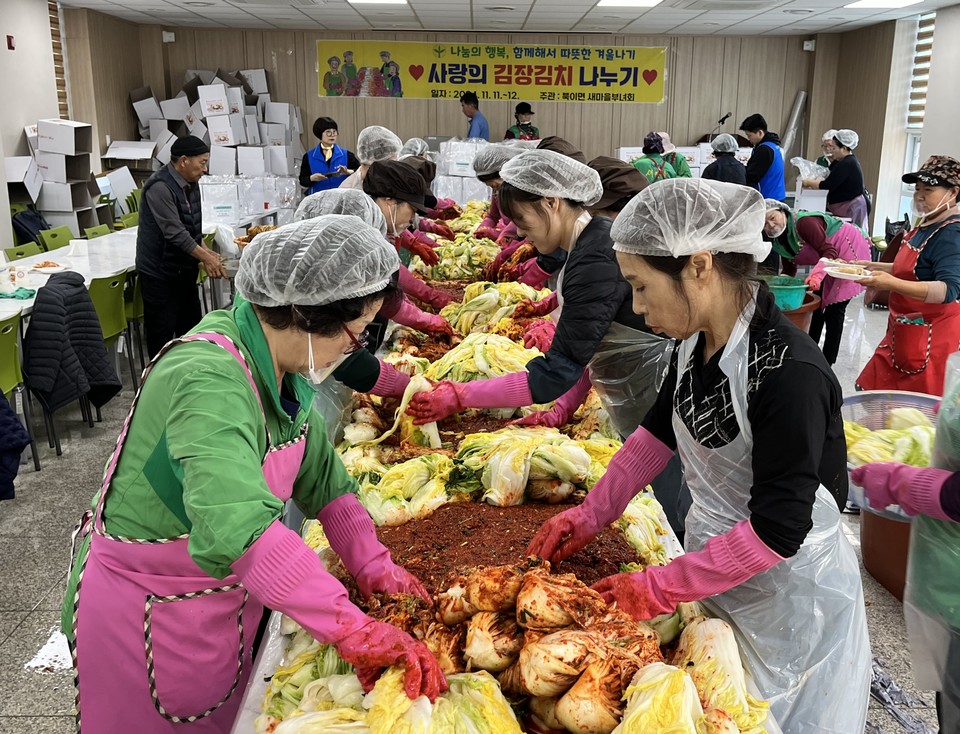 충북 청주시 북이면 새마을부녀회가 11~12일 북이면 다목적회관에서 ‘사랑의 김장김치 나누기’ 행사를 했다.