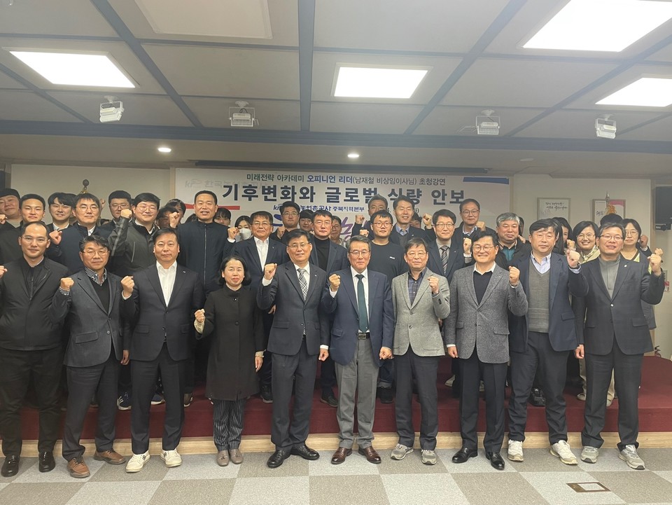 한국농어촌공사 충북지역본부는 19일 충북지역본부 대회의실에서 전 기상청장인 남재철 서울대 농업생명과학대학 특임교수를 초청해 ‘기후위기 시대의 식량안보’를 주제로 특강을 개최했다.