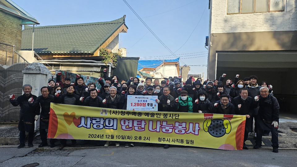 (사)청주예총 예술인봉사단은 10일 ‘사랑의 연탄 나눔 봉사’를 청주 사직1동 일원에서 실시했다.