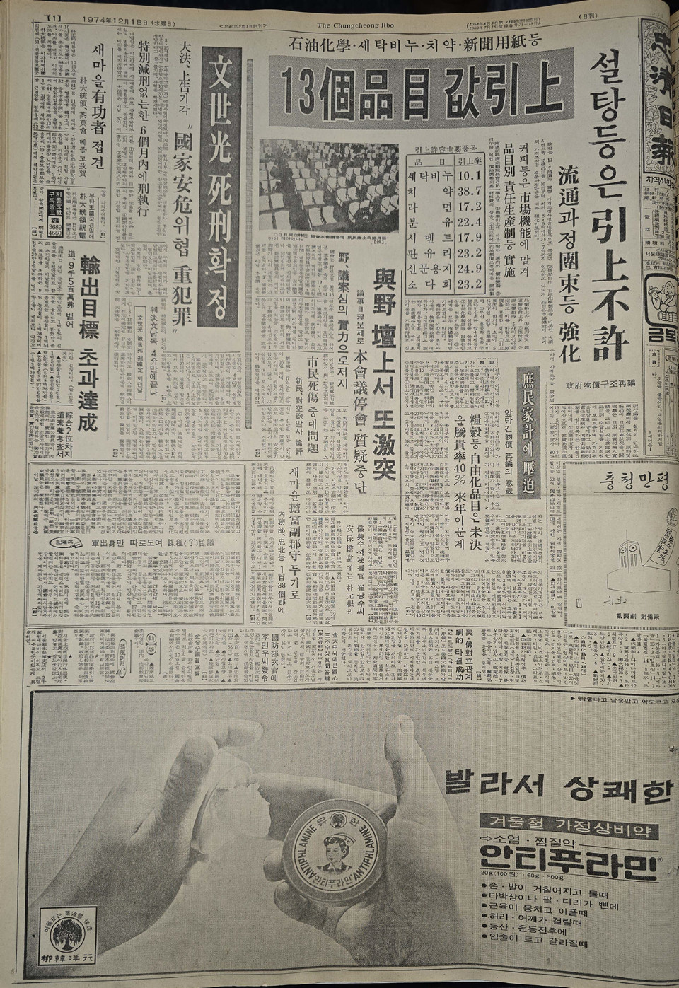 <다시 보는 충청일보 106> 1974년 12월 셋째 주