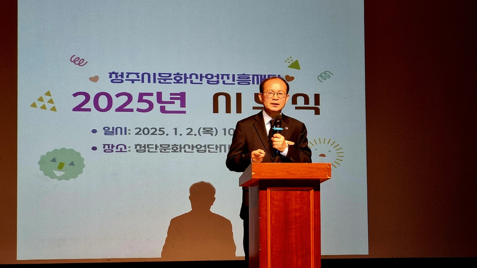 변광섭 청주문화재단 대표는 “그 어느 때보다 문화의 위로와 예술의 치유가 필요한 시간”이라며 “다시 가보지 않은 길 위에 선 2025년, 걱정과 두려움 대신 용기와 진심으로 함께 길을 만들고 벽을 넘어 새로운 세상으로 청주의 문화 영토를 넓히자”고 전했다. /김재옥기자