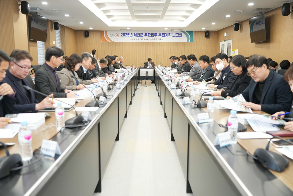 충남 서천군은 지난 6일 군청 상황실에서 김기웅 군수를 비롯한 부군수, 국·소장, 부서장 등 70여 명이 참석한 가운데 2025년 주요업무 추진계획 보고회를 개최했다.