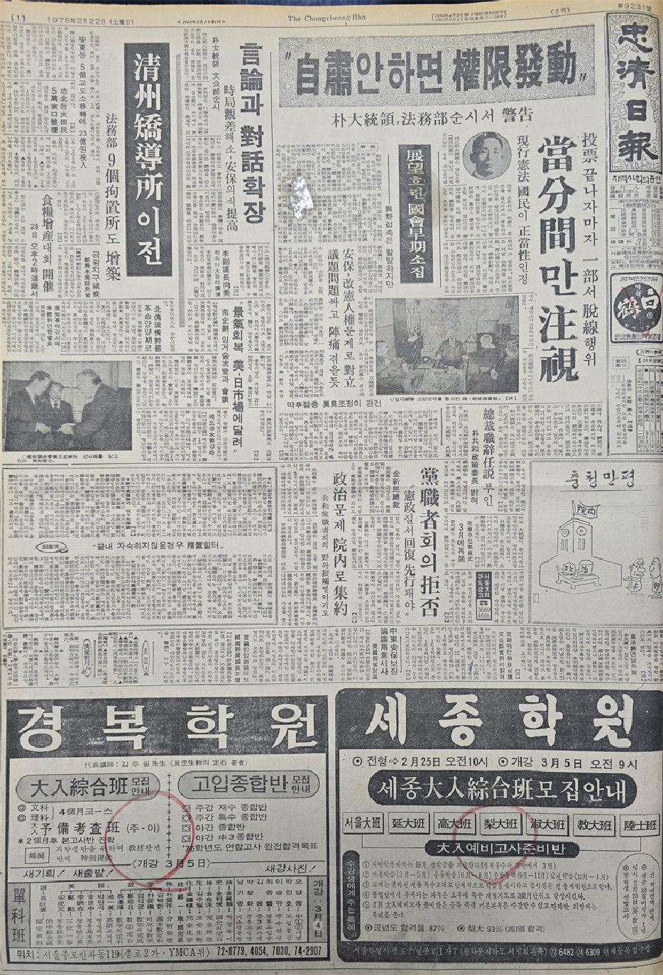 내용은 '朴正熙大統領(박정희대통령)은 20일 오후 『國民投票(국민투표)가 끝난지 며칠 되지않아 일부 사람들이 國民(국민)을 선동하고 社會(사회)의 물의를 일으키려고 책동하고 있는 것을 알고있지만 당분간 이를 주시하겠으나 끝까지 自肅하지 않고 지나치게 脫線行爲(탈선행위)를 한다면 大統領은 憲法上(헌법상) 憲法을 수호할 책임이 있는만큼 憲法守護(헌법수호)를 위해 憲法이 부여한 權限을 발동하여 적절한 조치를 취하지 않을 수 없다』고 말했다'로 요약된다.