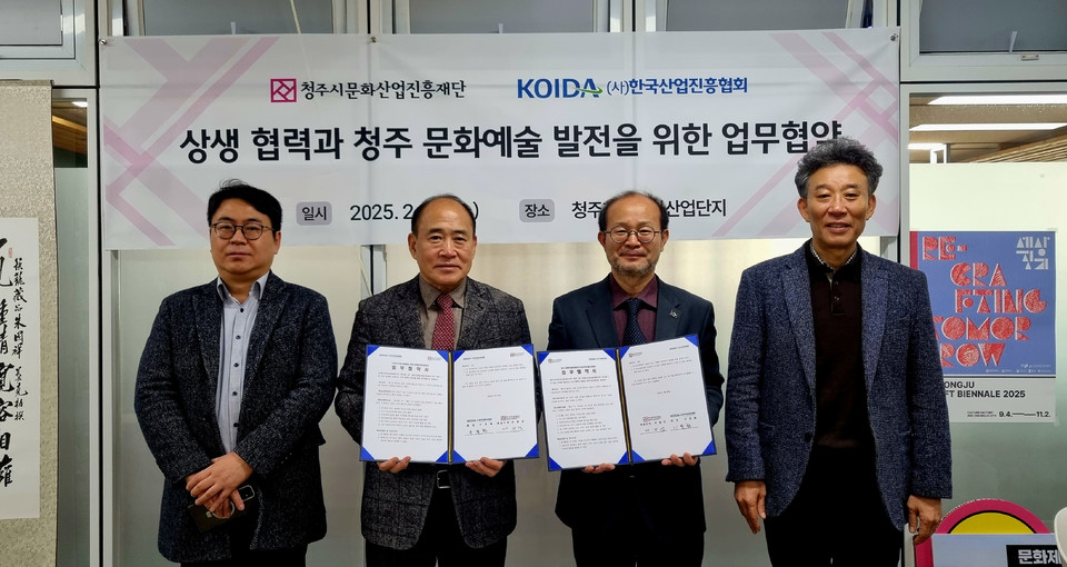 청주시문화산업진흥재단(이하 청주문화재단)과 (사)한국산업진흥협회(이하 KOIDA)는 26일 업무협약을 맺고 더 좋은 청주 행복한 시민 구현을 위해 협력하기로 했다.