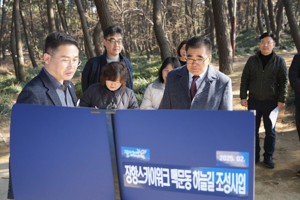 이어 서천군 대표 관광지인 장항송림산림욕장을 찾아 스카이워크 엘리베이터 설치 공사 진행 상황을 점검하고, 맥문동 하늘길 조성사업의 추진 현황을 살폈다.