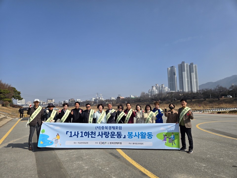 (사)충북경제포럼은 11일 청주시가 맑고 깨끗한 하천환경을 조성하기 위해 추진하고 있는 ‘1사1하천 사랑운동’에 참여했다.