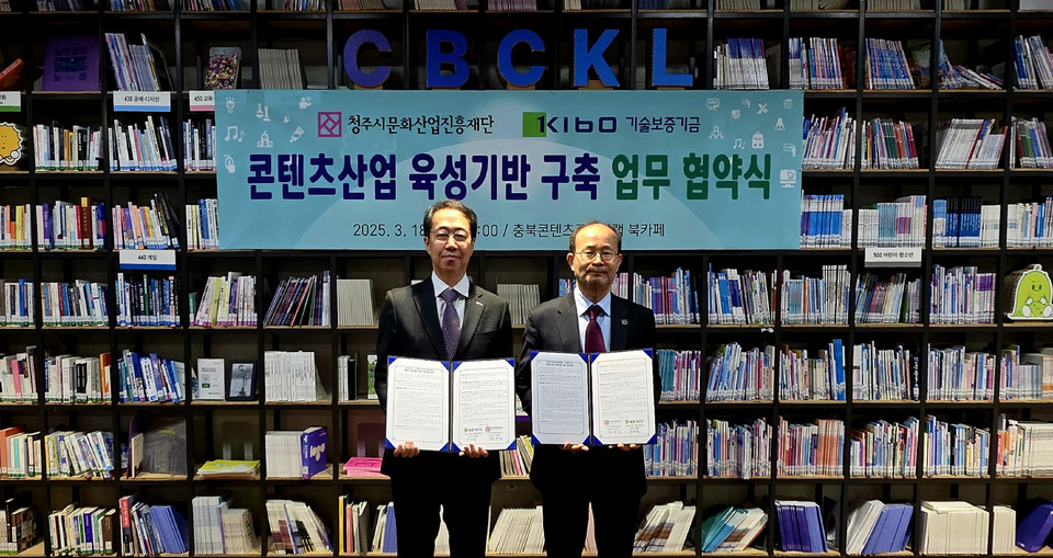 청주시문화산업진흥재단은 18일 기술보증기금 충청지역본부와 ‘청주 콘텐츠산업 육성 기반 구축 업무협약’을 체결했다. /김재옥기자 김재옥 기자 kjokstory@naver.com 다른기사 보기 저작권자 © 충청일보 무단전재 및 재배포 금지 당신만 안 본 뉴스 충청내륙고속화도로 12월 완전 개통... 충북 반나절 생활권 대전 도시정책, 설계부터 다시 짚어야 청주 산업지형 ‘대전환’…떠나는 분리막, 들어오는 HBM 세종지역 아파트 공급 가뭄 해소되나 대통령실·민주당, '행정수도 세종시 이전' 정책 본격 추진 나서 진천군수 선거 본격 점화···여야 6명 ‘무주공산’ 놓고 각축 “문 닫는 가게가 더 많다”…충북 자영업 폐업, 올해 벌써 지난해 추월 충청내륙고속화도로 12월 완전 개통... 충북 반나절 생활권 댓글삭제 삭제한 댓글은 다시 복구할 수 없습니다. 그래도 삭제하시겠습니까? 비밀번호 닫기 기사 댓글 0 댓글 접기 로그인 후 이용 가능합니다. 댓글 내용입력 비회원 로그인 이름 비밀번호 댓글 내용입력 댓글쓰기 계정을 선택하시면 로그인·계정인증을 통해 댓글을 남기실 수 있습니다. 회원 로그인 비회원 글쓰기 이름 비밀번호 자동등록방지 로그인 옵션 창닫기 주요기사 3분기 카드 해외사용 59억달러… 사상 최대 기록 충북 소비자심리지수 116.8… 2010년 이후 최고치 기록 충북도, 'AI 페스타 2025'로 AX 혁신거점 도약 청년 취업난에 직업계고 졸업생 절반은 대학 진학 청주서 수년 만에 출현한 바바리맨, 경찰 검거 기온 변동성 큰 이번 겨울, 짧고 간헐적 추위 찾아와