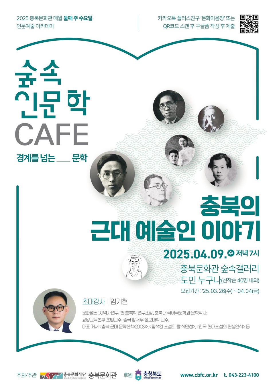 첫 행사는 4월 9일 ‘충북의 근대 예술인 이야기’라는 주제로 임기현 충북학연구소장이 충북 최초 근대 예술인들을 재조명한다.
