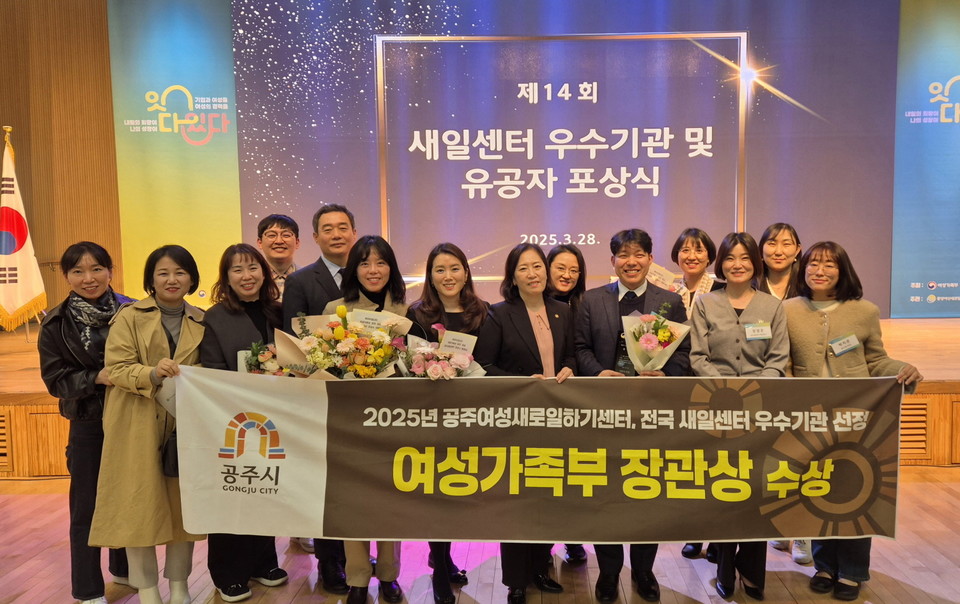충남 공주시가 여성가족부 주관 ‘제14회 새일센터 우수기관 및 유공자 포상식’에서 공주여성새로일하기센터가 우수기관으로 선정되어 여성가족부 장관상을 수상했다고 31일 밝혔다.