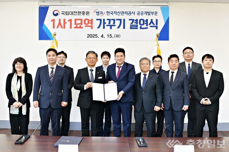 대전현충원은 15일 한국자산관리공사 공공부문(상임이사 오장석)과 '1사 1묘역 가꾸기' 협약식을 체결하고, 현충선양을 위한 공동 실천에 나섰다고 밝혔다.