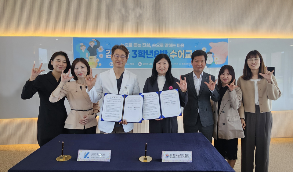 충북 청주김안과는 16일 (사)한국농아인협회 청주시지회와 ‘농아인 대상 의료서비스 지원’ 업무협약을 맺었다.