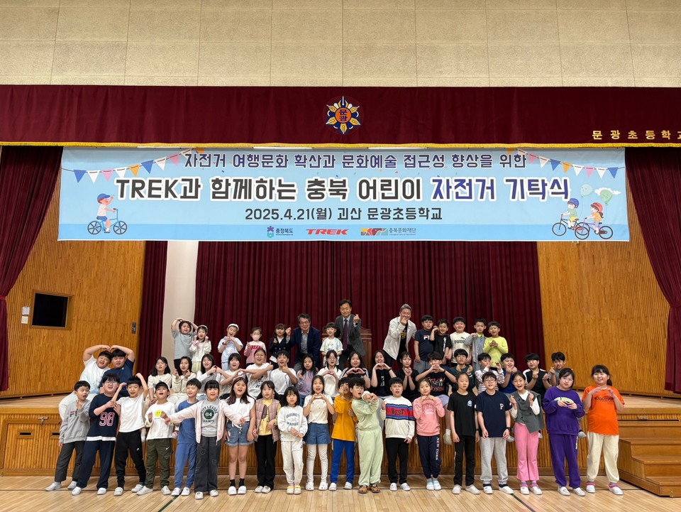 글로벌 프리미엄 자전거 브랜드 TREK는 21일 충북문화재단을 통해 괴산문광초 전교생 49명에게 자전거와 헬멧을 전달했다.