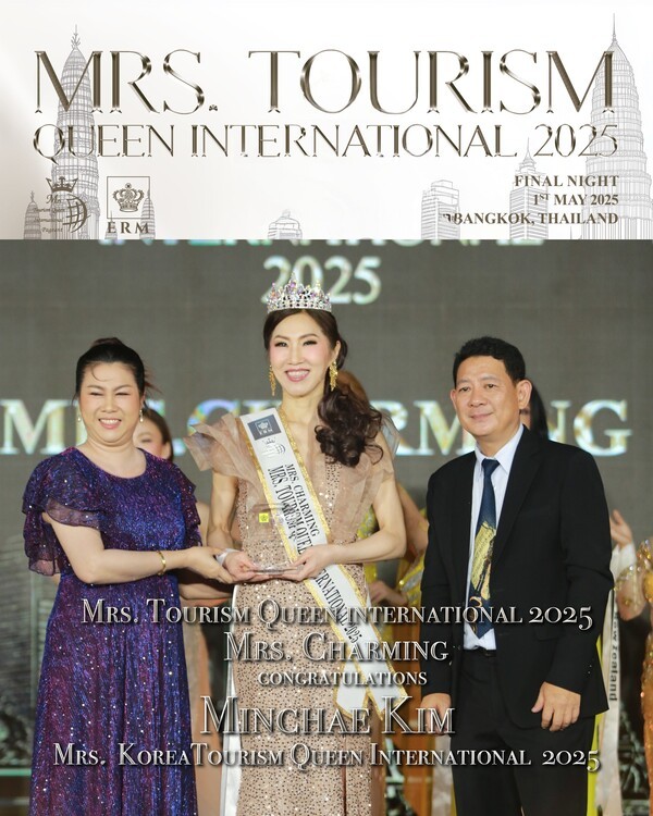 2025 미시즈 투어리즘 퀸 인터내셔널 세계대회에 한국 대표로 출전한 김민채씨가 Mrs Charming을 수상하며 한국의 아름다움을 세계에 알렸다.