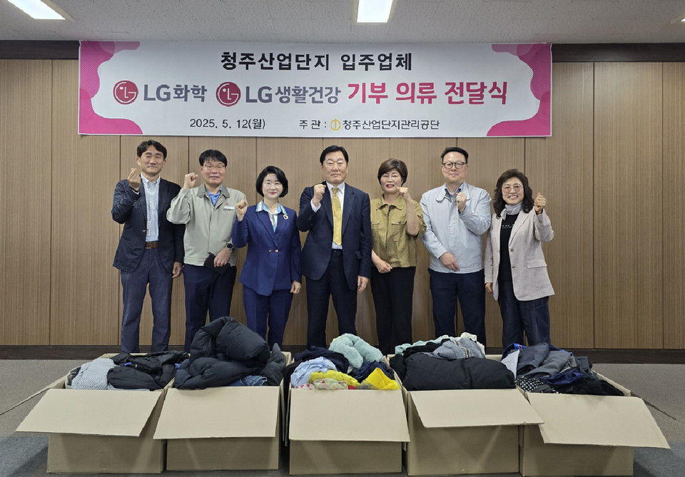 청주산업단지관리공단은 ㈜LG화학(주재임원 최종완)과 ㈜LG생활건강(생산총괄임원 정철용)으로부터 기부받은 2000여 점의 의류를 12일 (사)한국여성소비자연합 충북지회(지회장 장일상), 봉선화 봉사대(대표 황난숙)에 전달했다. /김재옥기자