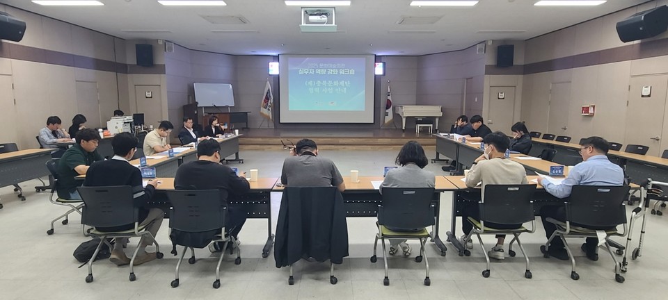 (재)충북문화재단(대표 김갑수)은 13일 시·군별 문화예술회관 실무자와 담당자 20명이 참가한 가운데 ‘2025 문화예술회관 실무자 역량 강화 워크숍’을 진행했다. /김재옥기자