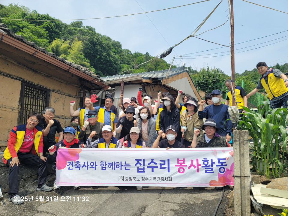 청주지역건축사회(회장 유보영)는 청주시 건축디자인과 김진원 과장 등 건축직 공무원 30여 명과 함께 지난 5월 31일 청주시 서원구 남이면 기초생활수급자 가정을 방문해 싱크대, 도배, 장판, 페인트칠 등 집수리 봉사를 했다. /김재옥기자
