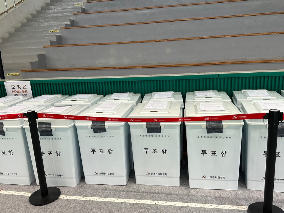 21대 대통령 선거일인 3일 청주시장애인스포츠센터에 마련된 개표소에 투표함들이 놓여 있다. /조은영기자 관련기사 21대 대통령 이재명 당선 확정 조은영 기자 dmsudls2@naver.com 다른기사 보기 저작권자 © 충청일보 무단전재 및 재배포 금지 당신만 안 본 뉴스 충청내륙고속화도로 12월 완전 개통... 충북 반나절 생활권 대전 도시정책, 설계부터 다시 짚어야 청주 산업지형 ‘대전환’…떠나는 분리막, 들어오는 HBM 세종지역 아파트 공급 가뭄 해소되나 대통령실·민주당, '행정수도 세종시 이전' 정책 본격 추진 나서 진천군수 선거 본격 점화···여야 6명 ‘무주공산’ 놓고 각축 “문 닫는 가게가 더 많다”…충북 자영업 폐업, 올해 벌써 지난해 추월 충청내륙고속화도로 12월 완전 개통... 충북 반나절 생활권 댓글삭제 삭제한 댓글은 다시 복구할 수 없습니다. 그래도 삭제하시겠습니까? 비밀번호 닫기 기사 댓글 0 댓글 접기 로그인 후 이용 가능합니다. 댓글 내용입력 비회원 로그인 이름 비밀번호 댓글 내용입력 댓글쓰기 계정을 선택하시면 로그인·계정인증을 통해 댓글을 남기실 수 있습니다. 회원 로그인 비회원 글쓰기 이름 비밀번호 자동등록방지 로그인 옵션 창닫기 주요기사 3분기 카드 해외사용 59억달러… 사상 최대 기록 충북 소비자심리지수 116.8… 2010년 이후 최고치 기록 충북도, 'AI 페스타 2025'로 AX 혁신거점 도약 청년 취업난에 직업계고 졸업생 절반은 대학 진학 청주서 수년 만에 출현한 바바리맨, 경찰 검거 기온 변동성 큰 이번 겨울, 짧고 간헐적 추위 찾아와