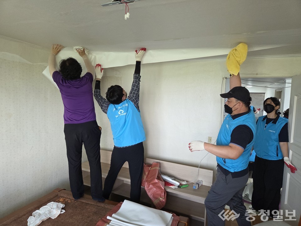 이번 활동은 당진서부새마을금고 사랑봉사대에서 해당 가정의 어려움을 발굴해 석문면 개발위원회에서 100만 원 상당의 자재비를 지원받아 도배·장판 교체 및 천장 수리, 쓰레기 수거 등을 실시하며 어르신의 생활 불편을 해소했다.
