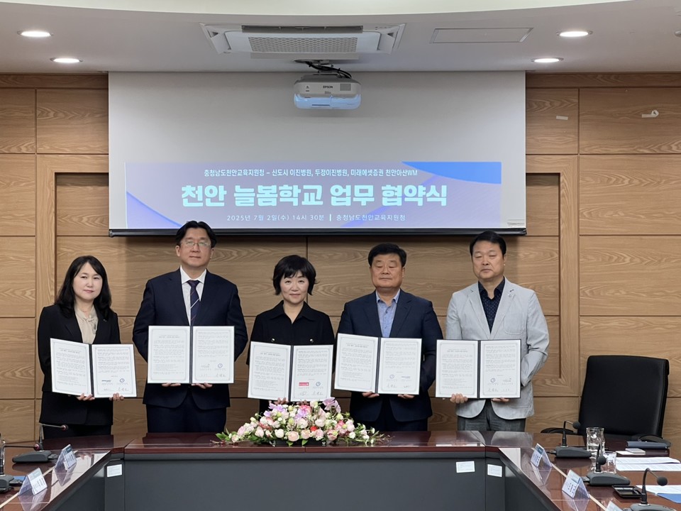 충남 천안교육지원청은 2일 천안지역 어린이 병원, 금융기관과 함께 천안 늘봄학교 및 충남형 늘봄거점센터 운영 활성화를 위한 업무협약(MOU)을 체결했다.