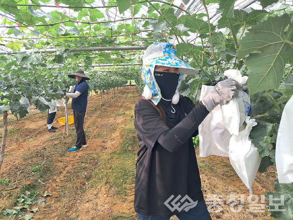 진천농협(조합장 박기현)과 농협진천군지부(지부장 유호종) 임직원 10여 명은 지난 4일 충북 진천군 진천읍 이종원 농가에서 샤인머스켓 포도 봉지씌우기 농촌봉사활동을 펼쳤다.