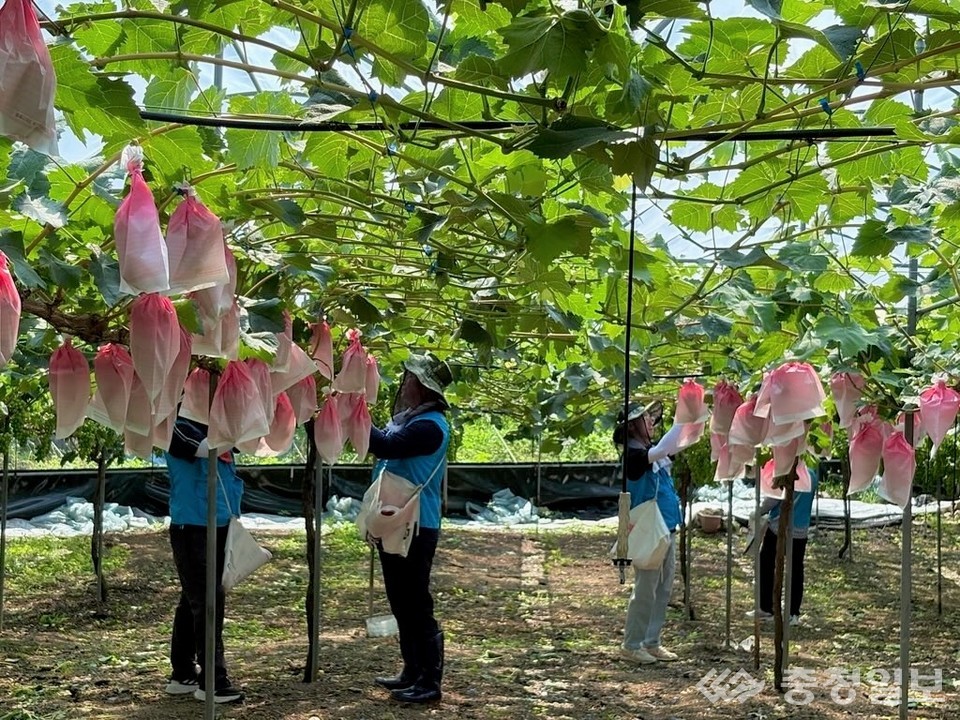 포도 봉지 씌우기 작업… 농가에 실질적 도움