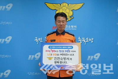 충북 진천소방서 양찬모 서장이 16일 ‘인구문제 인식개선 릴레이 캠페인’에 동참했다.