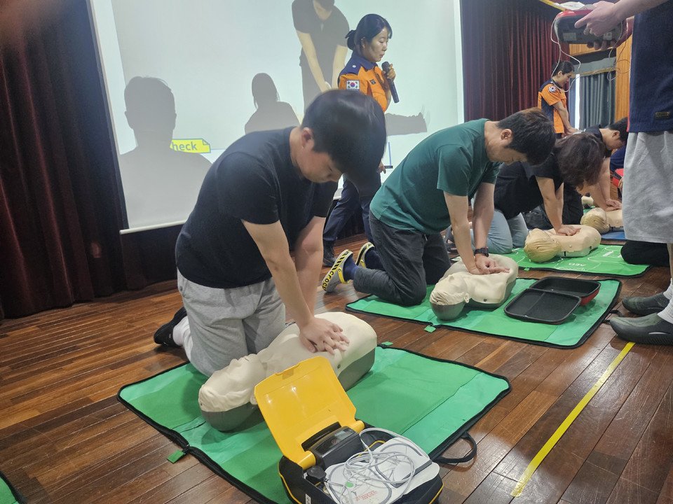 이날 △심폐소생술(CPR) 방법 △자동심장충격기(AED) 사용법 △이물질에 의한 기도폐쇄 대처법 등 실제 상황과 유사한 조건에서 실제 적용 가능성을 높이는 데 중점을 두고 진행했다.