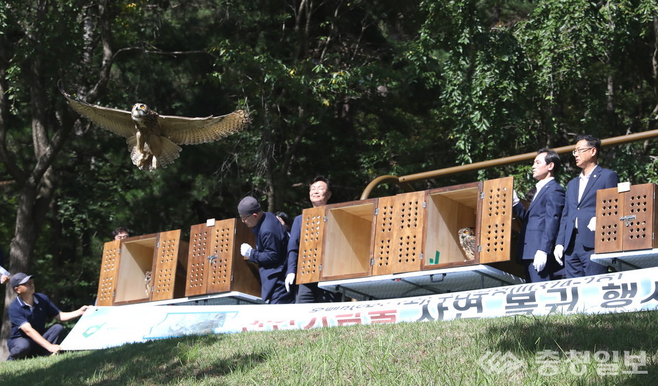 이번에 자연으로 돌아간 생명체는 천연기념물 324-1호인 올빼미 2마리와, 324-2호인 수리부엉이 5마리다.