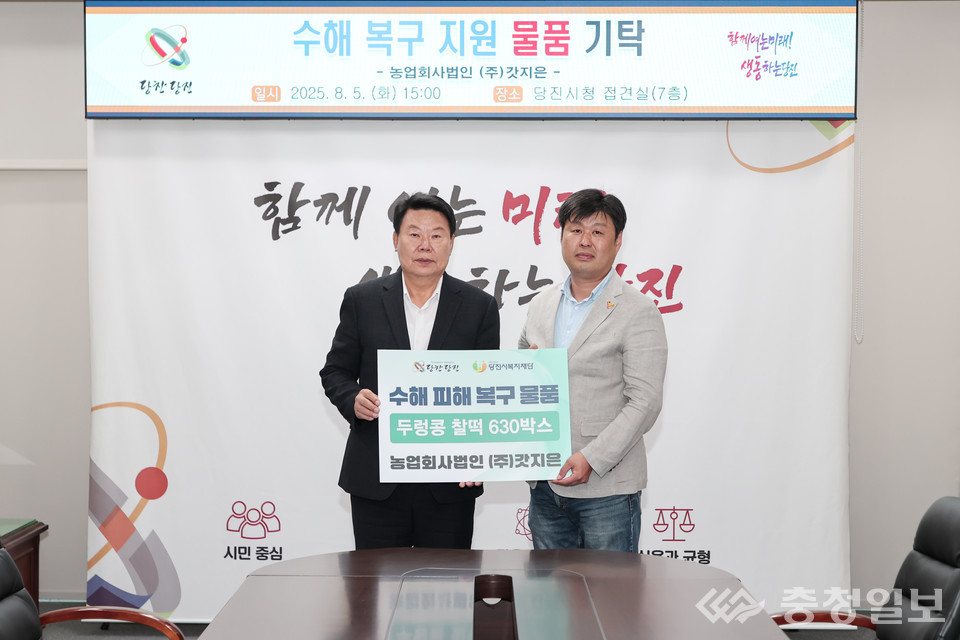 오성환 당진시장은 "지역 기업의 따뜻한 관심과 정성이 수해 복구에 큰 힘이 되고 있다"며 "기탁해주신 성품은 필요한 곳에 잘 전달하겠다"고 감사를 전했다.