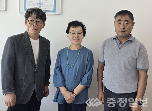 충북 진천군 덕산중학교 12회 졸업생인 정길자씨(72·여·가운데)가 18일 덕산중에서 김사명 교장(왼쪽)에게 장학금 1000만원을 기탁했다.