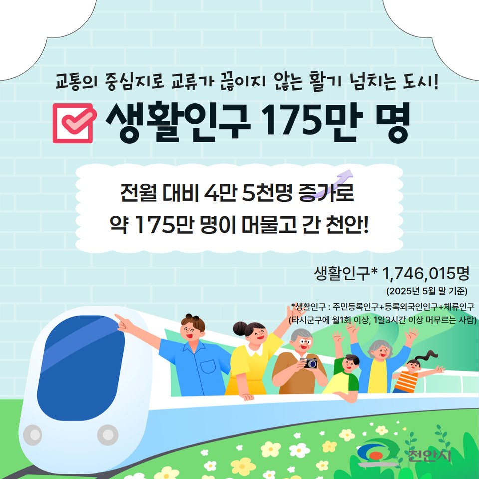 5월 말 기준 천안시 생활인구는 174만 6015명으로 집계됐다.