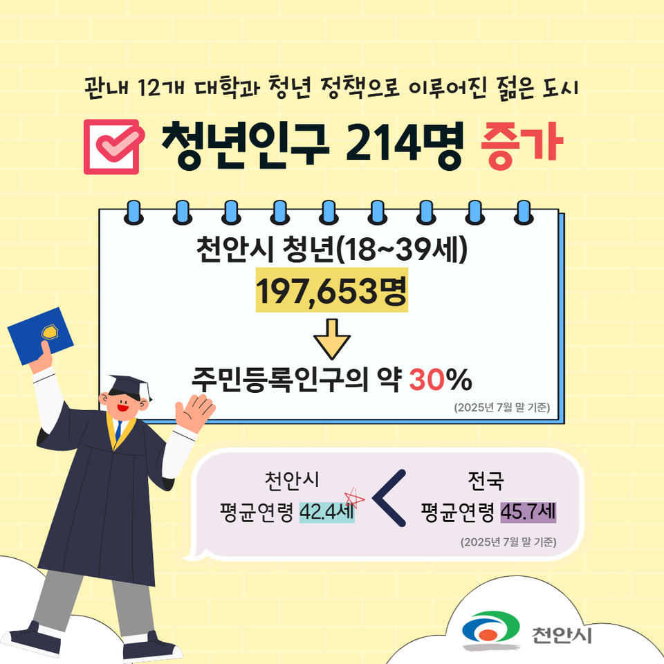 청년인구는 7월 말 기준 19만 7653명으로 천안시 주민등록인구의 30%를 차지한다.