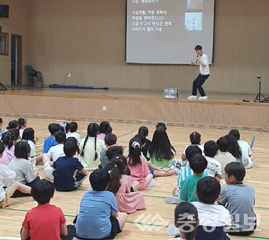 충북 진천군 진천상산초등학교는 26일 학교 강당에서 1·4학년을 대상으로 북뮤지션 제갈인철 강사를 초청해 북콘서트를 개최했다.