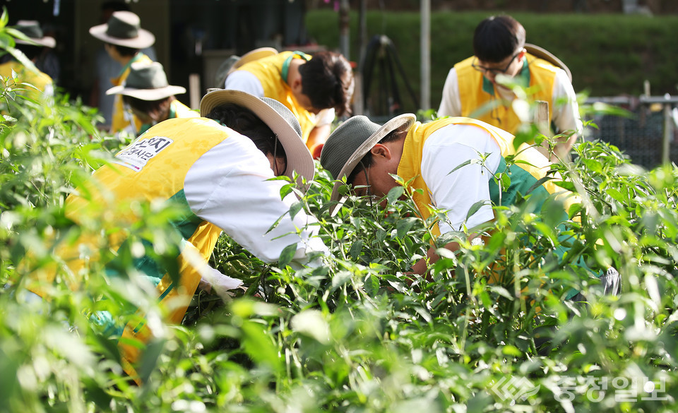 한여름 뙤약볕 아래 고추밭에서 구슬땀을 흘리는 이들이 있었다.
