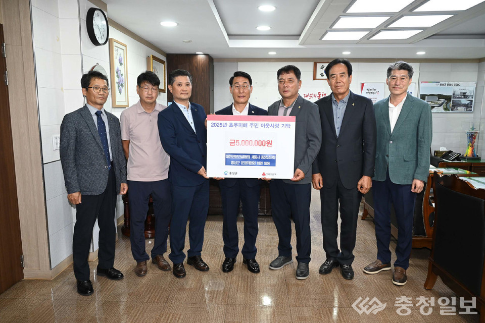 충남 홍성군은 대한전문건설협회 세종시·충청남도회와 홍성군운영위원회가 지난 7월 집중호우로 피해를 입은 지역 주민들을 돕기 위해 성금 500만원을 홍성군에 기탁했다.