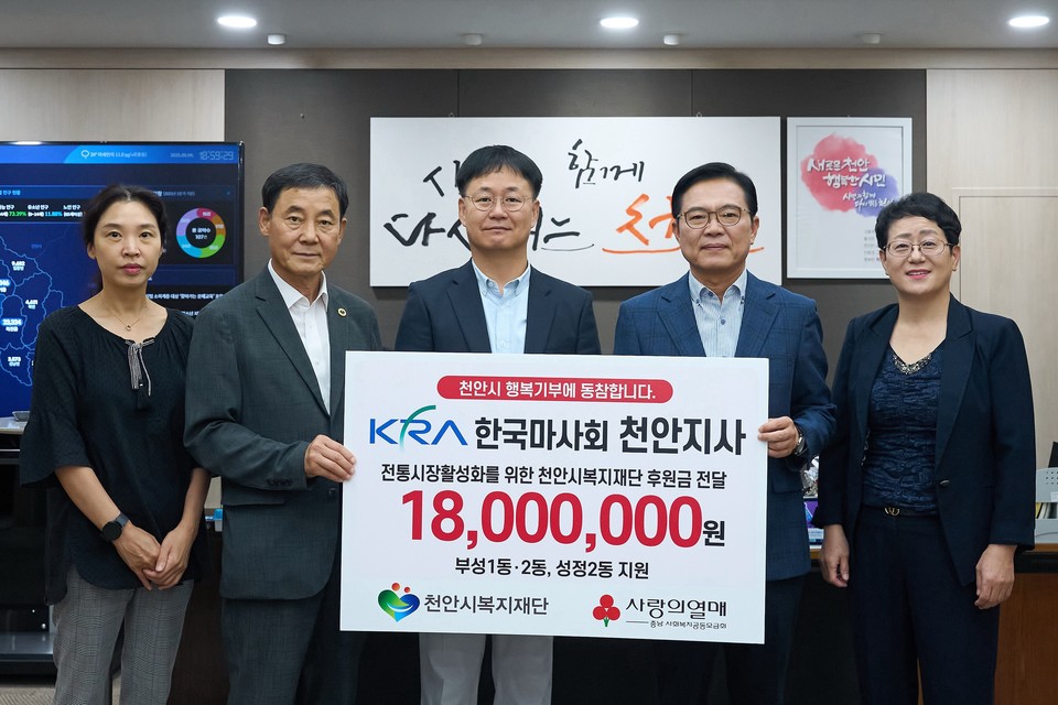 (재)천안시복지재단은 4일 한국마사회 천안지사가 후원금 1800만원을 기탁했다고 밝혔다.