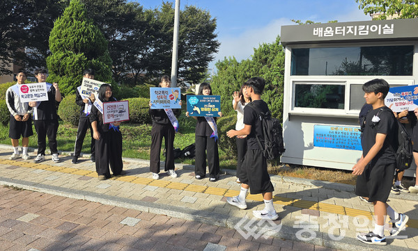 덕산중은 이 기간 △등굣길 폭력예방 캠페인 △학교폭력 뮤지컬 관람 △문예 행사 등을 진행했다. /진천=김동석기자