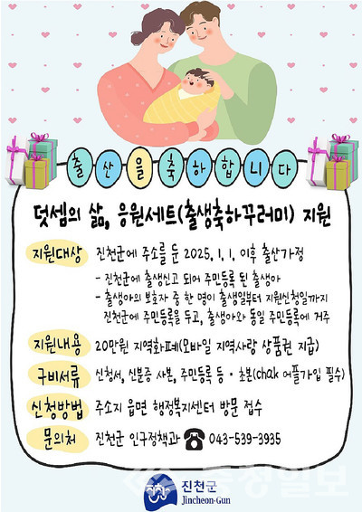 지원 대상은 2025년 1월 1일 이후 진천군에 출생 신고를 한 가정이다.