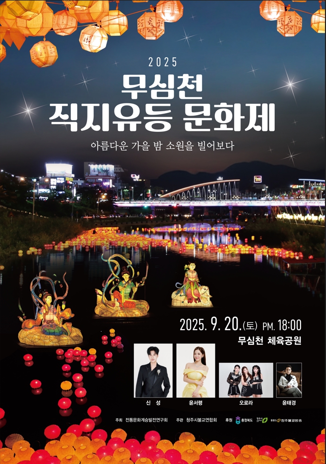 청주의 가을밤을 빛으로 수놓을 ‘2025 무심천 직지유등문화제’가 오는 20일 오후 6시 무심천 체육공원에서 열린다.