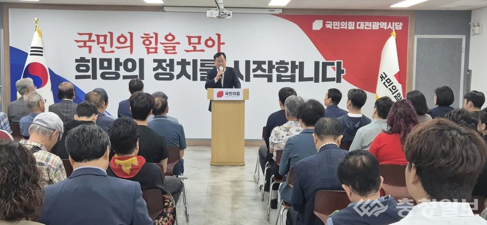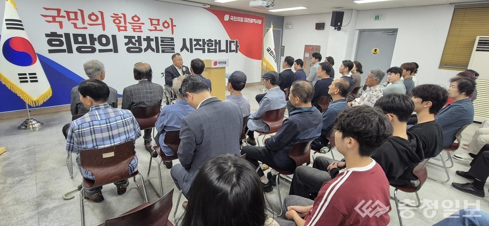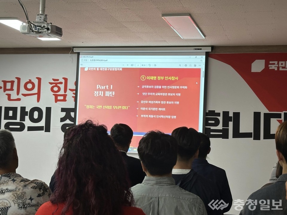 19일 대전 중구에서 열린 국민의힘 중구당원협의회 당원교육 현장은 긴장감과 결의로 가득했다.