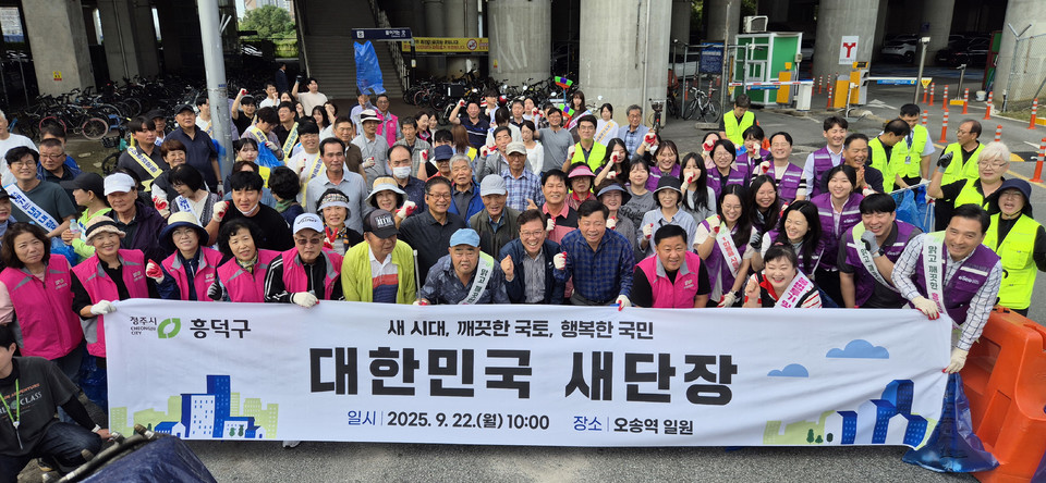 충북 청주시 흥덕구는 22일 추석과 APEC 개최를 맞아 전국적으로 추진되는 ‘대한민국 새 단장 캠페인’의 일환으로 청주의 관문인 오송역 일원에서 환경정화 활동을 실시했다.