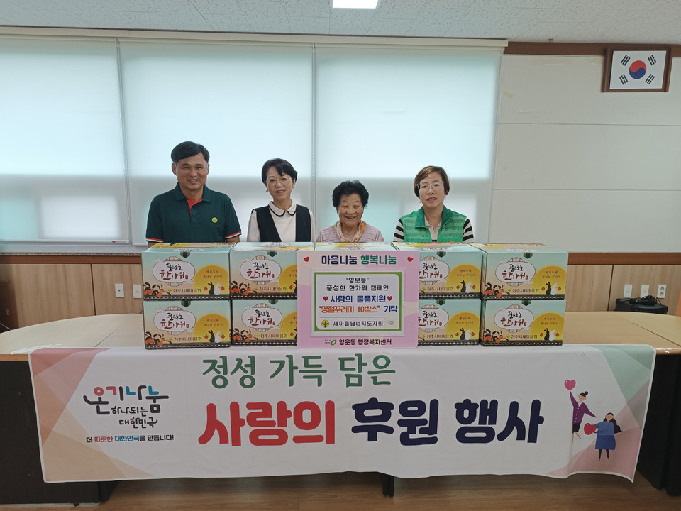충북 청주시 상당구 영운동 새마을남녀지도자는 25일 경제적 어려움을 겪고 있는 저소득 가구 10세대를 위한 먹거리 세트를 영운동에 맡겼다. /박장미기자 박장미 기자 pjm8929@daum.net 다른기사 보기 저작권자 © 충청일보 무단전재 및 재배포 금지 당신만 안 본 뉴스 충청내륙고속화도로 12월 완전 개통... 충북 반나절 생활권 대전 도시정책, 설계부터 다시 짚어야 청주 산업지형 ‘대전환’…떠나는 분리막, 들어오는 HBM 세종지역 아파트 공급 가뭄 해소되나 대통령실·민주당, '행정수도 세종시 이전' 정책 본격 추진 나서 진천군수 선거 본격 점화···여야 6명 ‘무주공산’ 놓고 각축 “문 닫는 가게가 더 많다”…충북 자영업 폐업, 올해 벌써 지난해 추월 충청내륙고속화도로 12월 완전 개통... 충북 반나절 생활권 댓글삭제 삭제한 댓글은 다시 복구할 수 없습니다. 그래도 삭제하시겠습니까? 비밀번호 닫기 기사 댓글 0 댓글 접기 로그인 후 이용 가능합니다. 댓글 내용입력 비회원 로그인 이름 비밀번호 댓글 내용입력 댓글쓰기 계정을 선택하시면 로그인·계정인증을 통해 댓글을 남기실 수 있습니다. 회원 로그인 비회원 글쓰기 이름 비밀번호 자동등록방지 로그인 옵션 창닫기 주요기사 3분기 카드 해외사용 59억달러… 사상 최대 기록 충북 소비자심리지수 116.8… 2010년 이후 최고치 기록 충북도, 'AI 페스타 2025'로 AX 혁신거점 도약 청년 취업난에 직업계고 졸업생 절반은 대학 진학 청주서 수년 만에 출현한 바바리맨, 경찰 검거 기온 변동성 큰 이번 겨울, 짧고 간헐적 추위 찾아와