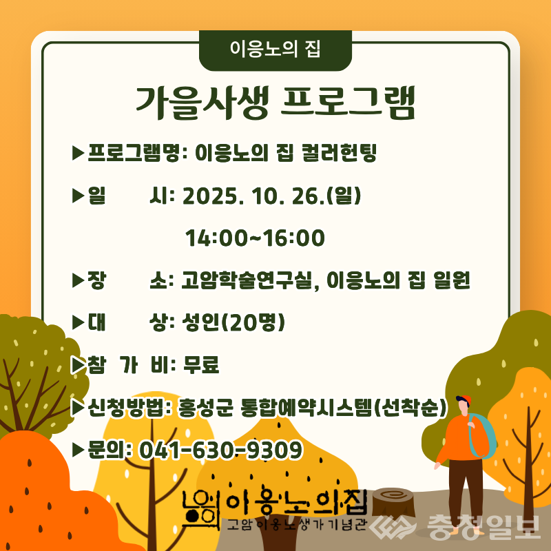 충남 홍성군 고암이응노생가기념관은 오는 26일 오후 2시부터 4시까지 '가을사생 프로그램'을 운영한다.