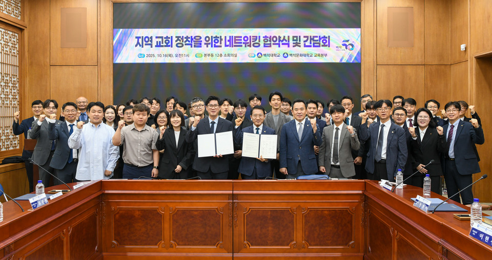 백석대(총장 송기신)와 백석문화대(총장 이경직) 교목본부는 16일 교내 본부동 소회의실에서 수도권 지역 교회 청년대학부 목회자 및 사역 담당자들과 함께 '지역교회 정착 네트워킹 협약식'을 개최했다.